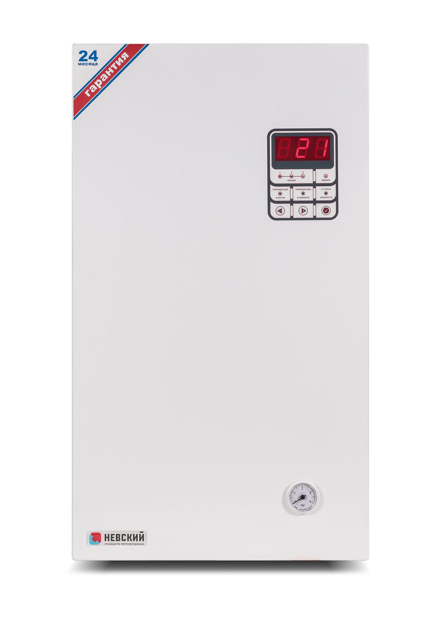 Снабжен цифровым терморегулятором с дисплеем, микропроцессорным управлением с ПИ-регулированием и датчиком комнатной температуры.