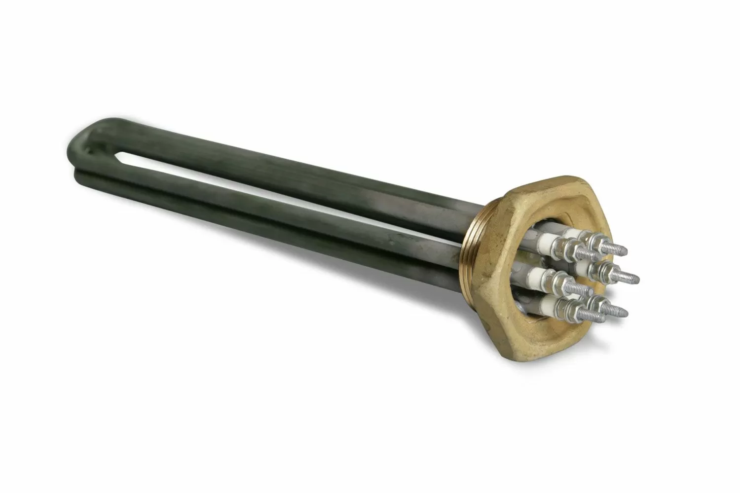 Нагрев воды в водонагревателе может производиться как от блока встроенных электротэнов, так и от теплообменника. Возможен комбинированный вариант. Каждый ТЭН 80 кВт имеет латунное основание и состоит из трех ТЭНов, изготовленных из нержавеющей стали AISI316L. Данная марка стали дает усиленную коррозионную стойкость, что увеличивает срок службы блок-ТЭНов 80 кВт.